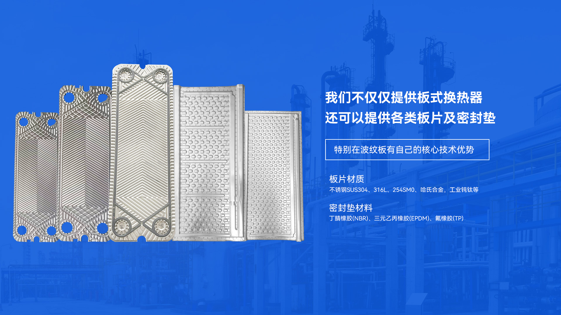 板片可采用不銹鋼板或鈦合金等,結(jié)構(gòu)緊湊,傳熱效率高,使用壽命長(zhǎng),維修方便